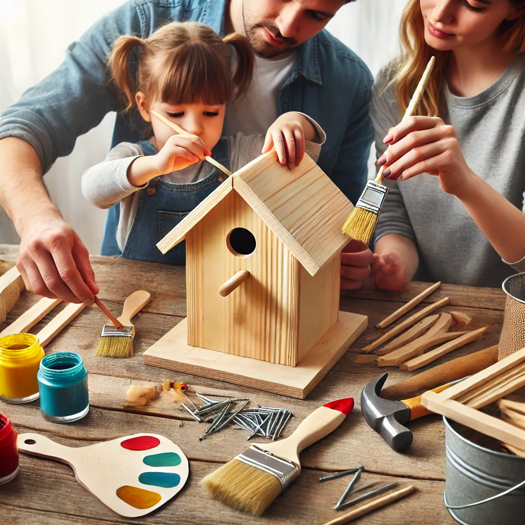 Assemble the birdhouse using nails and glue, allowing your kids to help with the hammering and gluing under supervision. Once the birdhouse is built, let your children paint and decorate it. This project not only teaches kids basic woodworking skills but also fosters a sense of responsibility as they create a safe home for birds.